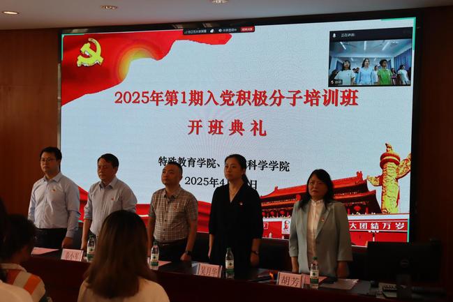 为了更好的培养入党积极分子,388vip太阳集团与特殊教育学院于4月29日中午举行2025年第1期入党积极分子培训班开班典礼,校党委组织部副部长庞宙华,388vip太阳集团党总支书记吴月华、副书记胡芳、党支部书记江敏,特殊教育学院党总支书记章小军、副书记李鹏、党支部书记解晶出席会议。本次会议由李鹏副书记主持,388vip太阳集团与特殊教育学院全体入党积极分子参会。