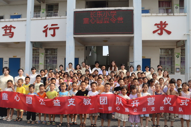 2025年7月16日,在革命热土江西吉安曲濑镇长乐小学,红旗猎猎,迎风招展。童心圆公益支教团队在此启动“星...